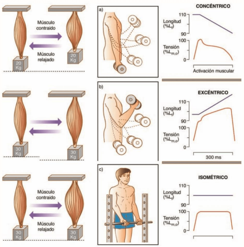 Según la relación que un individuo establece con las resistencias externas, la activación del músculo puede dar lugar a tres contracciones diferentes: