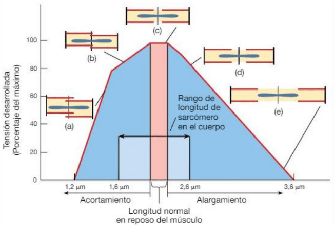 Directamente relacionado con el tipo de contracción se encuentra la capacidad de un músculo para generar fuerza a lo largo de toda la amplitud de movimiento, relacionándose directamente la longitud del músculo con la tensión muscular (Relación longitud –tensión) y con el gasto energético.