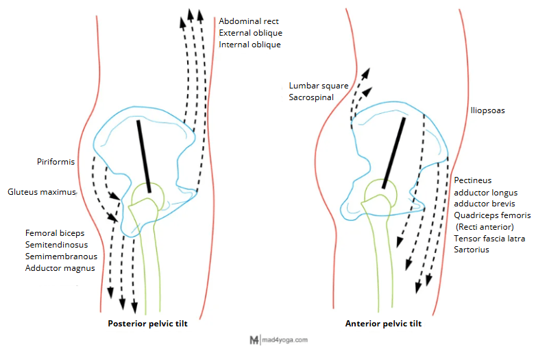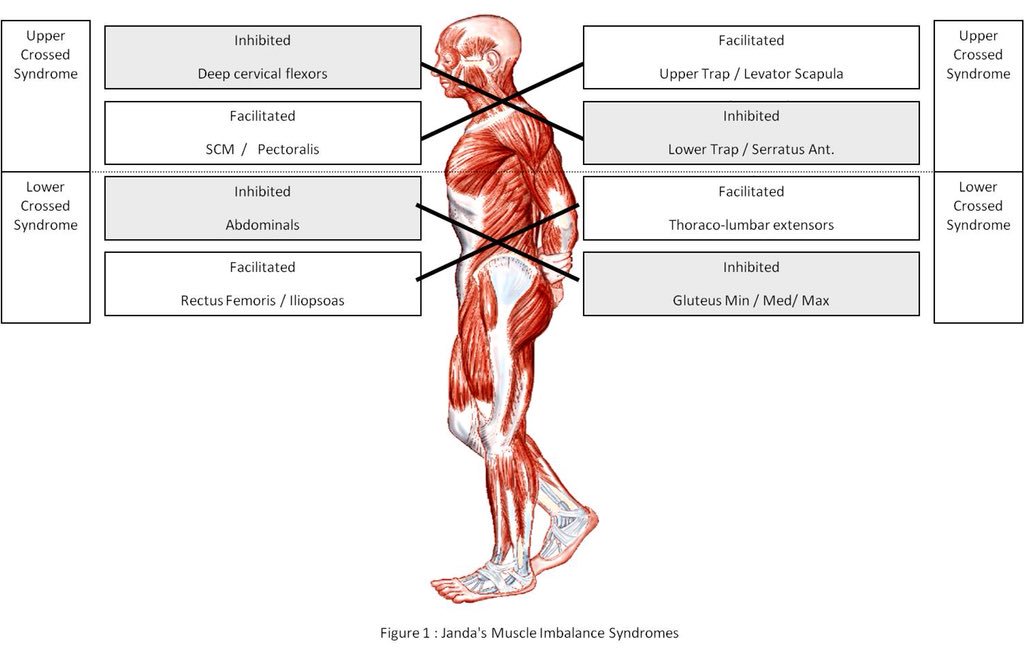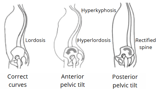 - The appearance of lower crossed syndrome in which a pelvic imbalance occurs, that is, the hip is no longer in a neutral position but is in anteversion (turns forward).