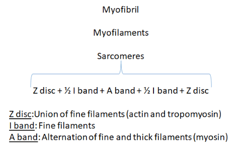 Among all these proteins that make up a myofibril, junctions and gaps (bands, lines and areas) are defined that delimit the structure of the functional unit of a myofibril: the sarcomere.