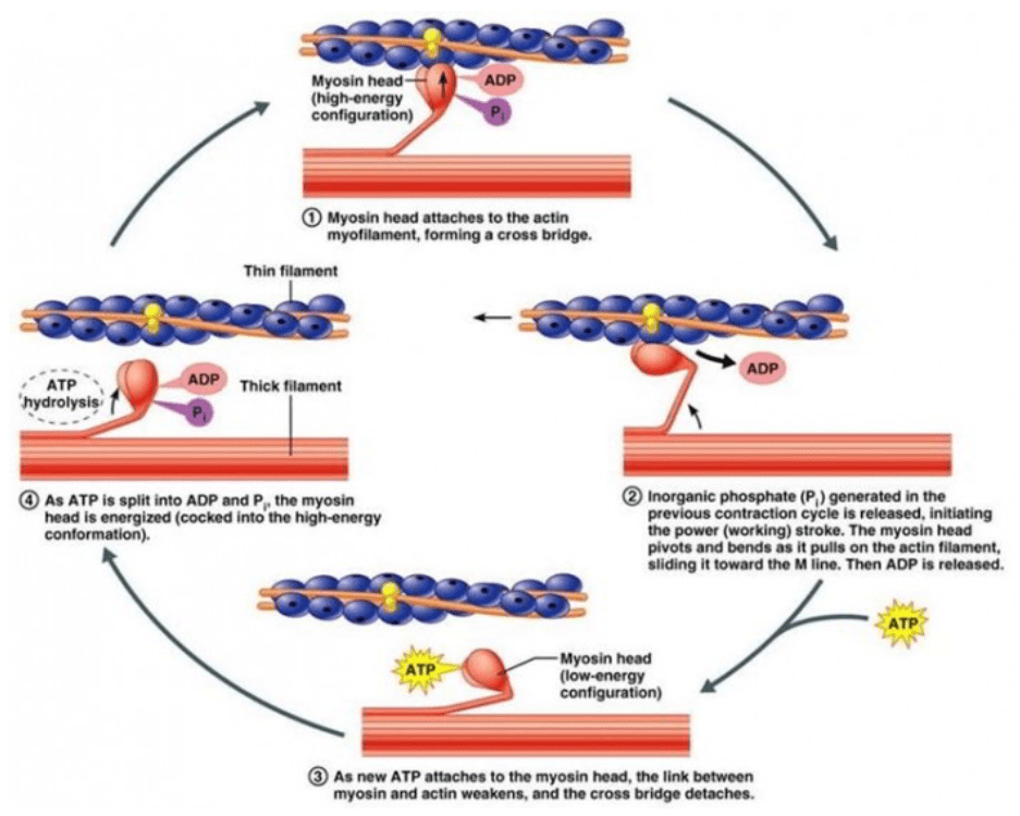 Thanks to the small concentration of ATP in the muscle tissue, muscle contractions stimulated by the entry of calcium ions into the cell can be initiated.