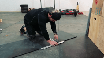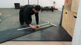5 – Mide y corta las piezas de alfombra de caucho.