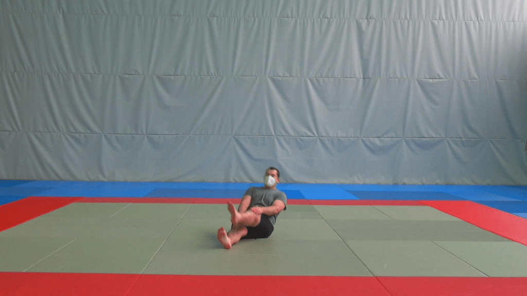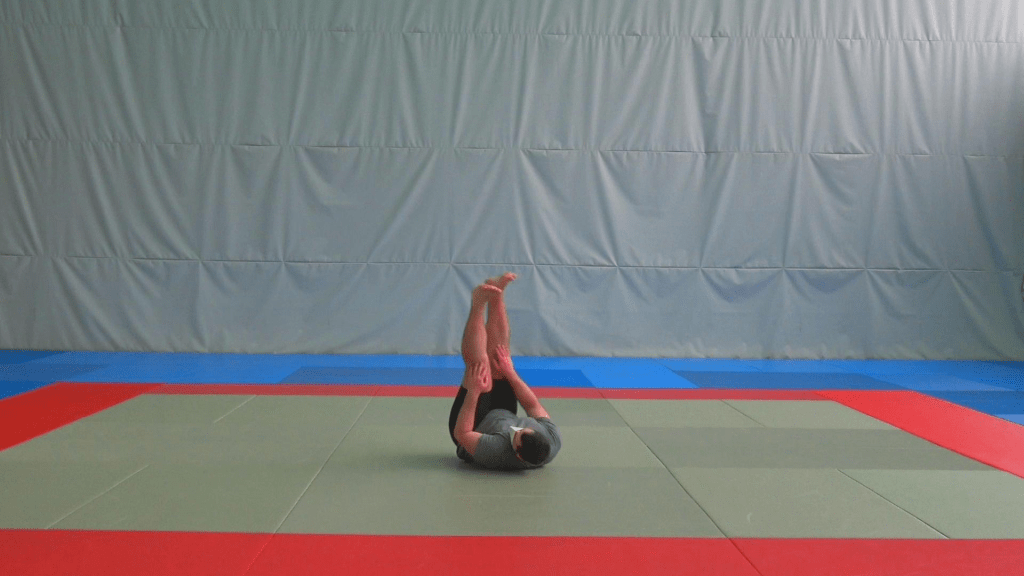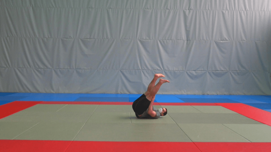 - Execution: Roll backwards and to the left with your chin tucked into your chest. To do this, extend your left leg and bring it towards your right foot to direct your body in that direction. Your hands are in contact with your knees and remain in contact with your thighs throughout the entire movement.