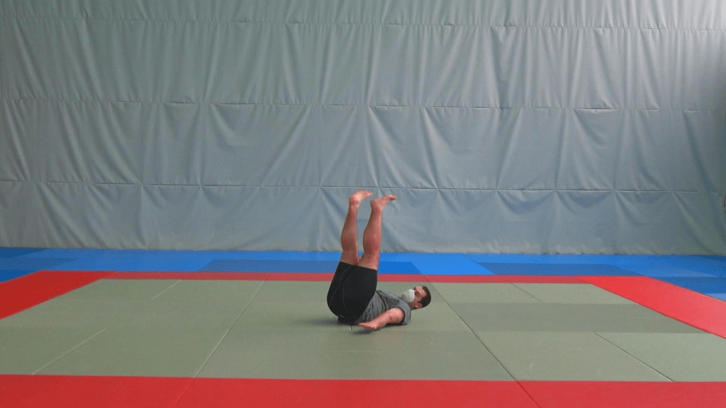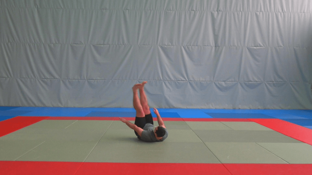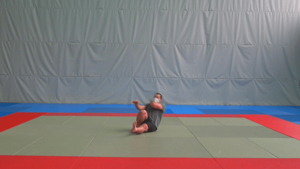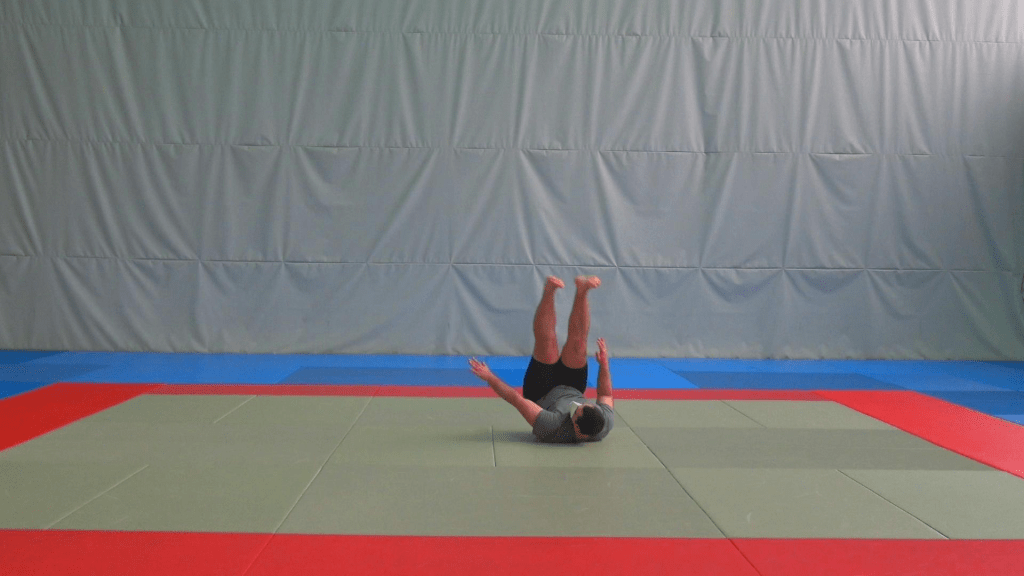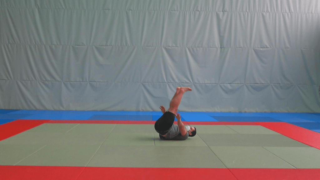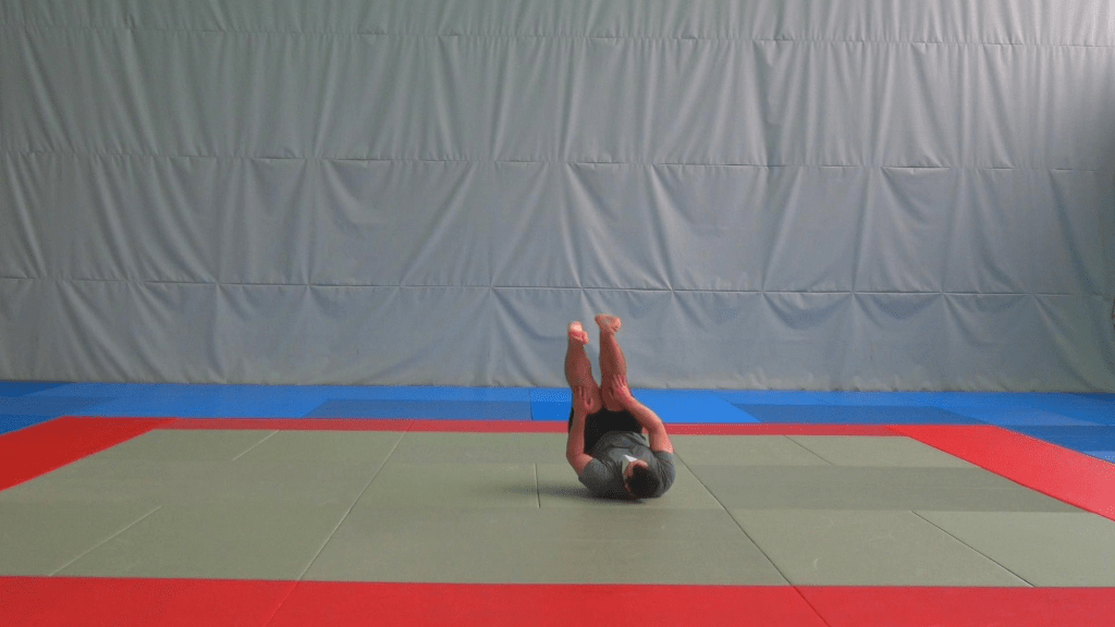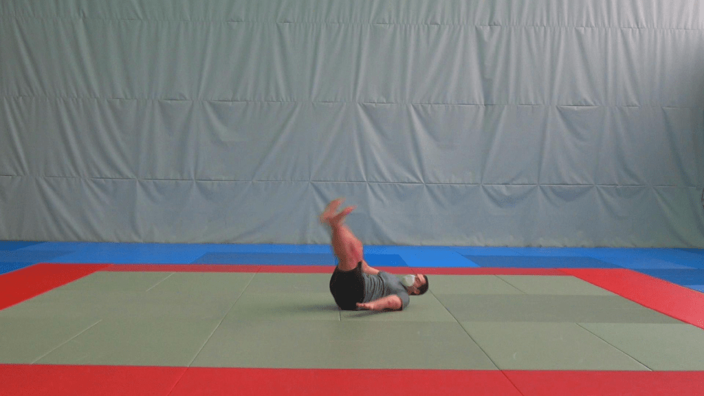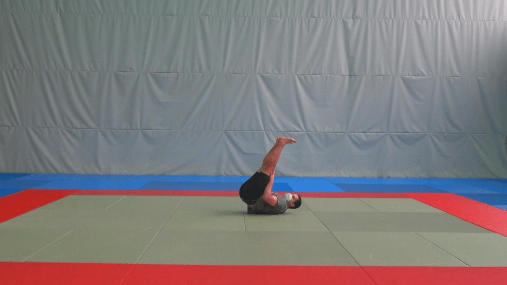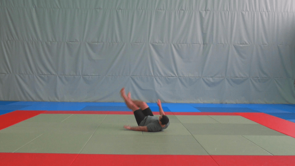 - Execution: Roll backwards and to the left with your chin tucked into your chest. To do this, extend your left leg and bring it towards your right foot to direct your body in that direction, hitting the ground with your left arm at a 35-degree angle to your torso. Start with your left arm abducted at the height of your left shoulder. The moment of impact is when the lumbar area of your back makes contact with the ground as you roll.