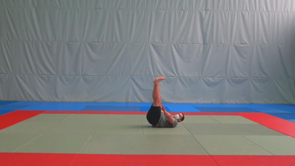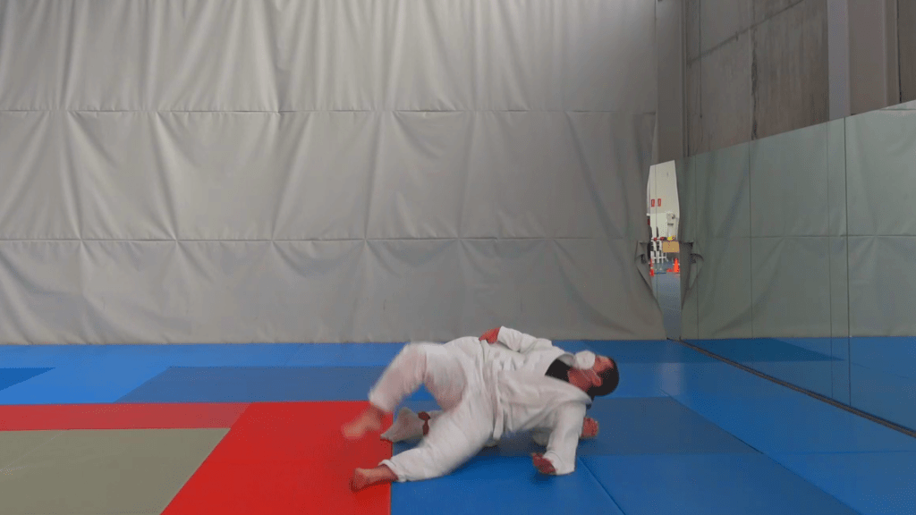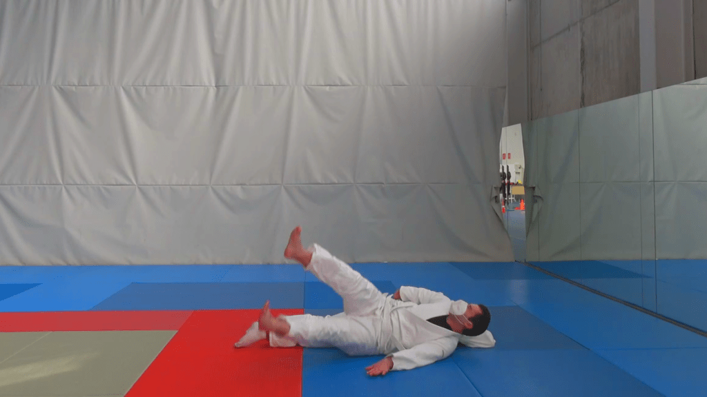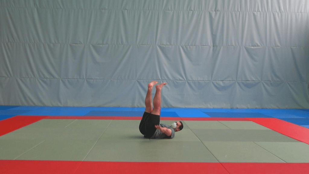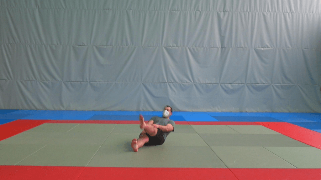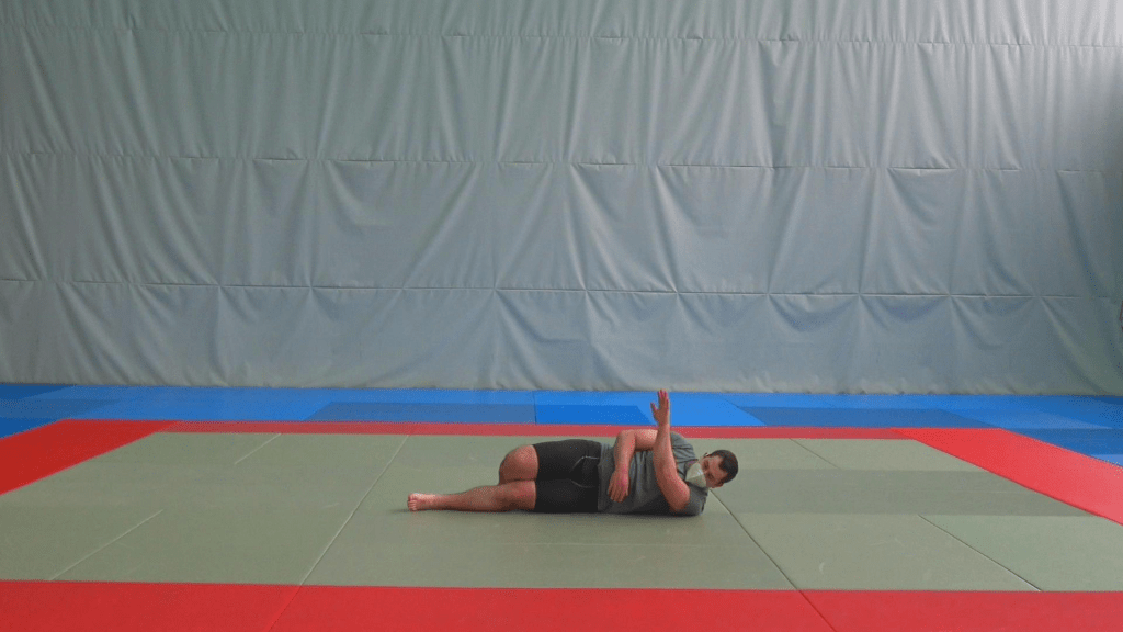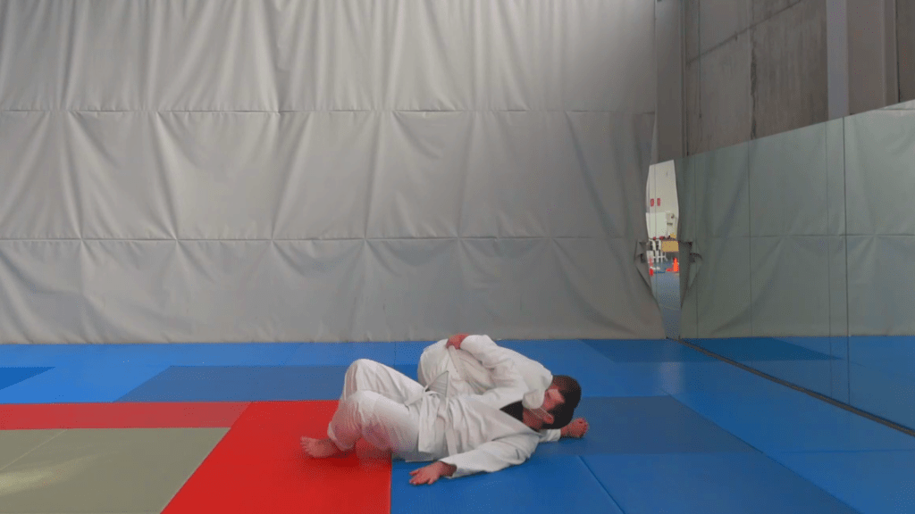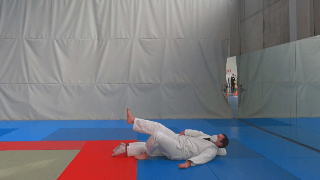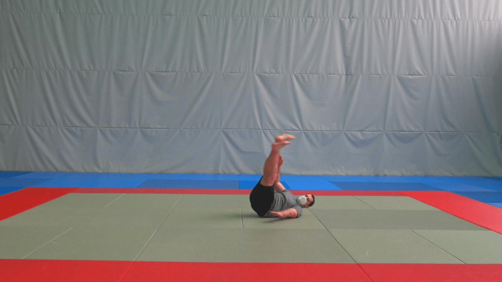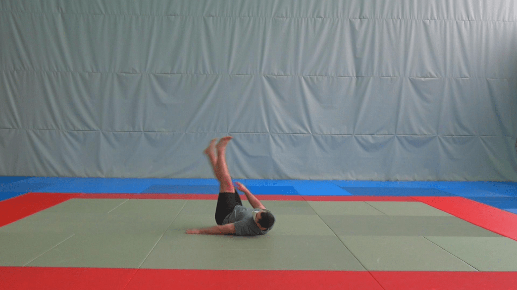 - Execution: Roll backwards and to the left with your chin tucked into your chest. To do this, extend your left leg and bring it towards your right foot to direct your body in that direction, hitting the ground with your left arm at a 35-degree angle to your torso. Start with your left arm abducted at the height of your left shoulder. The moment of impact is when the lumbar area of your back makes contact with the ground as you roll.
