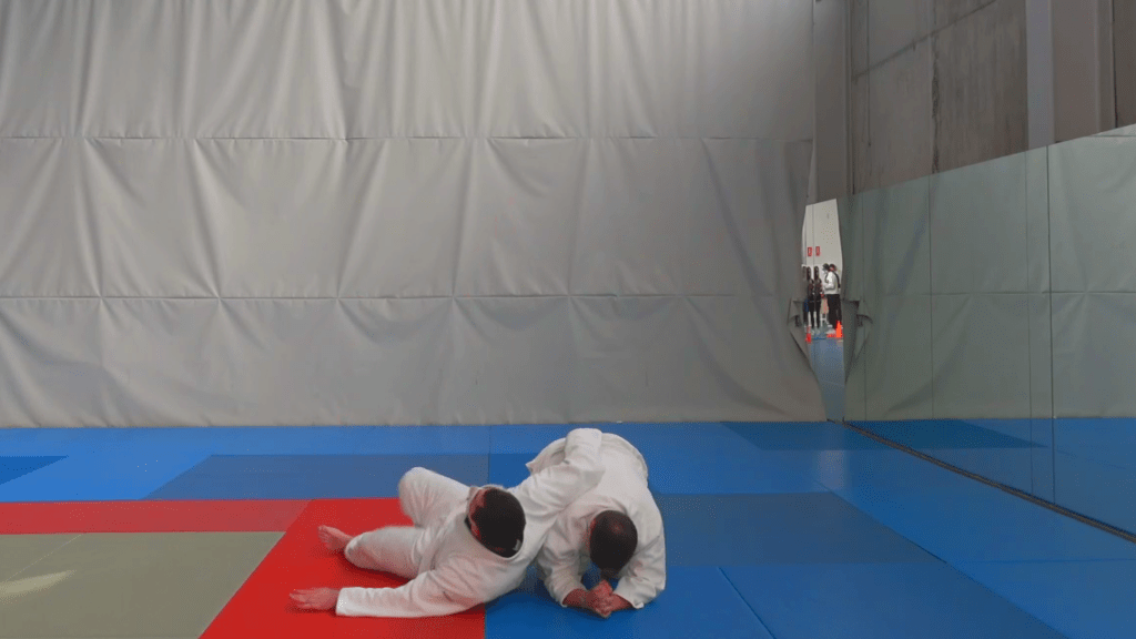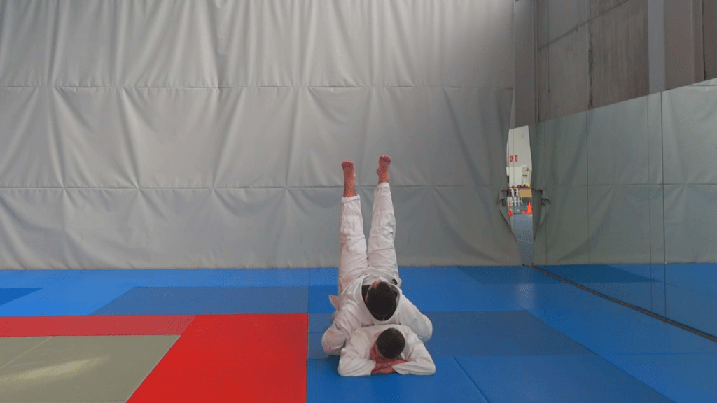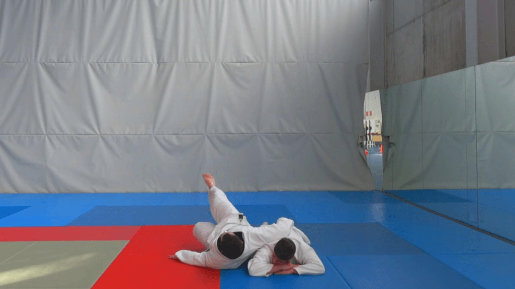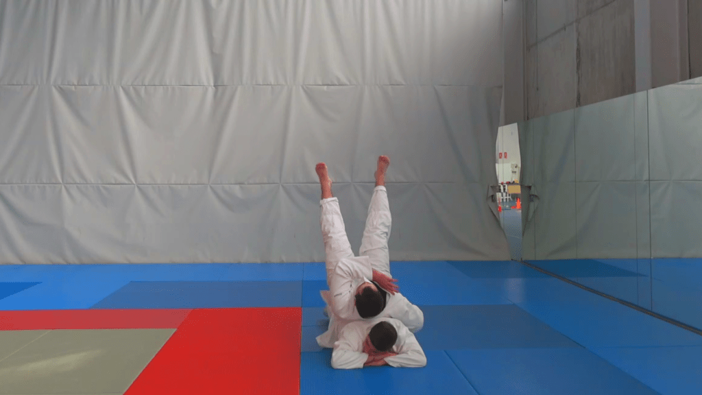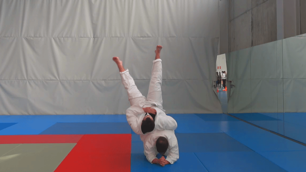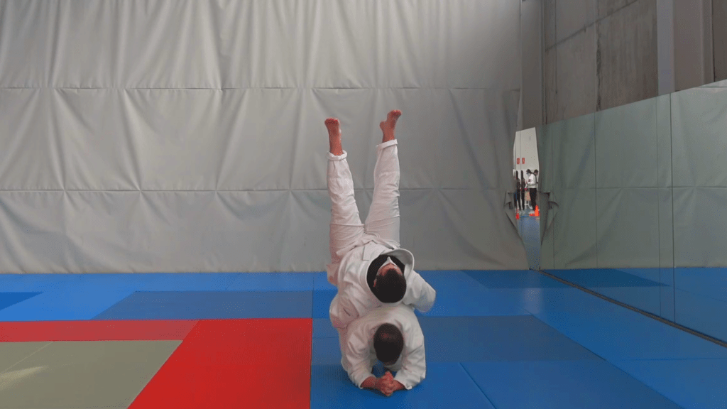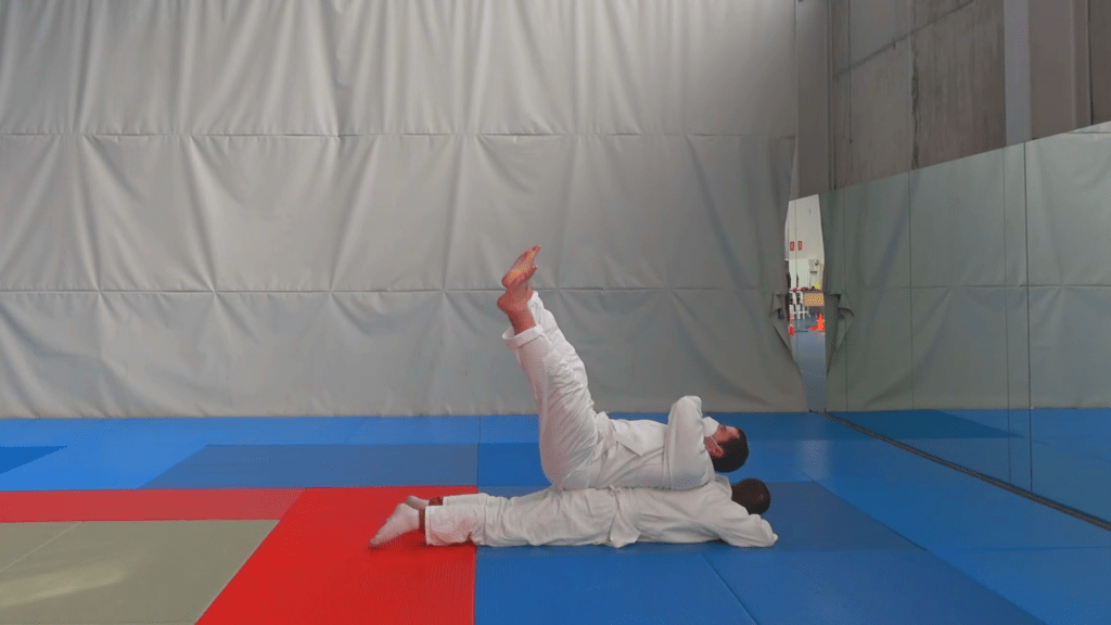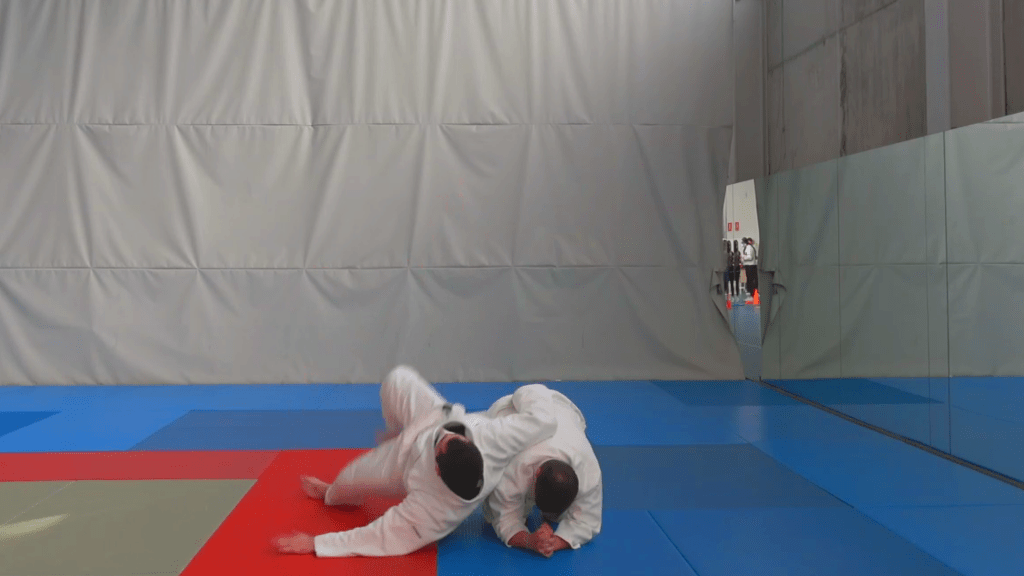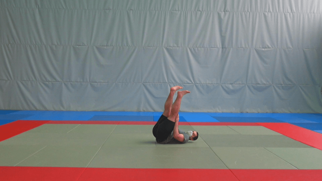 - Execution: Roll backwards and to the left with your chin tucked into your chest. To do this, extend your left leg and bring it towards your right foot to direct your body in that direction, hitting the ground with your left arm at a 35-degree angle to your torso. Start with your left arm abducted at the height of your left shoulder. The moment of impact is when the lumbar area of your back makes contact with the ground as you roll.