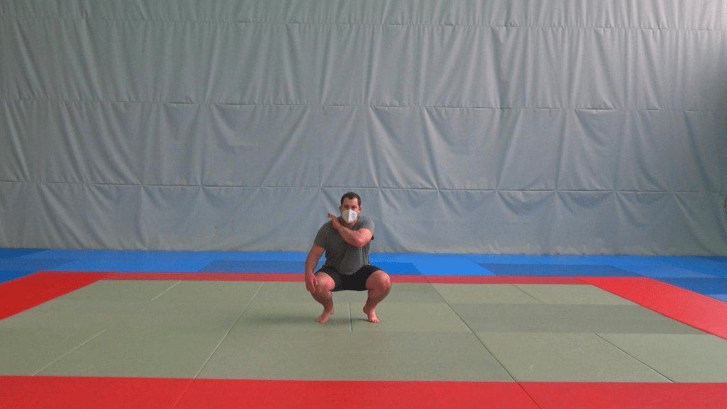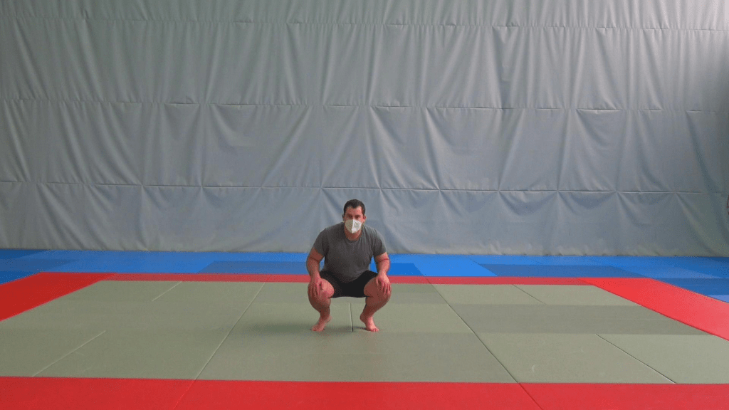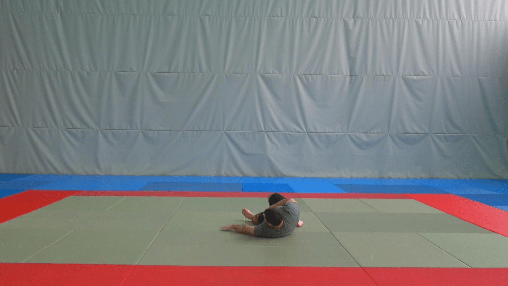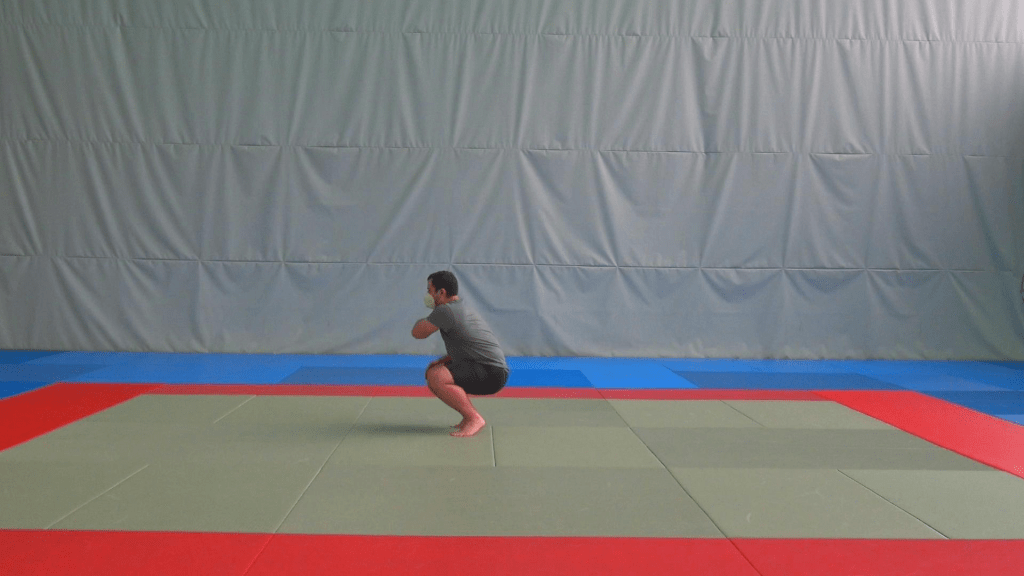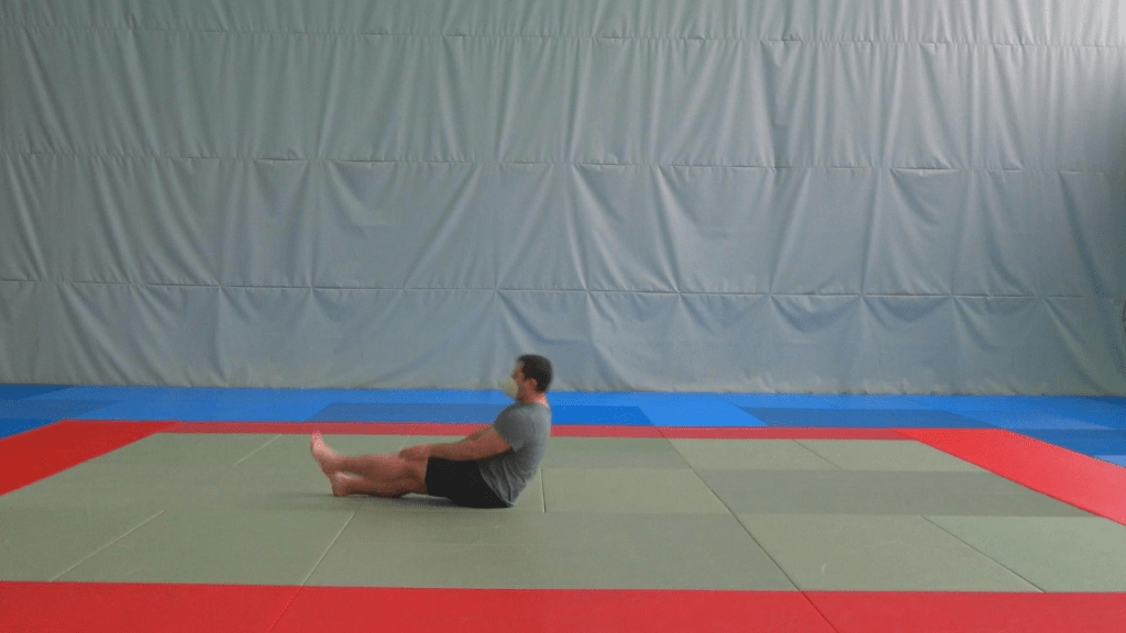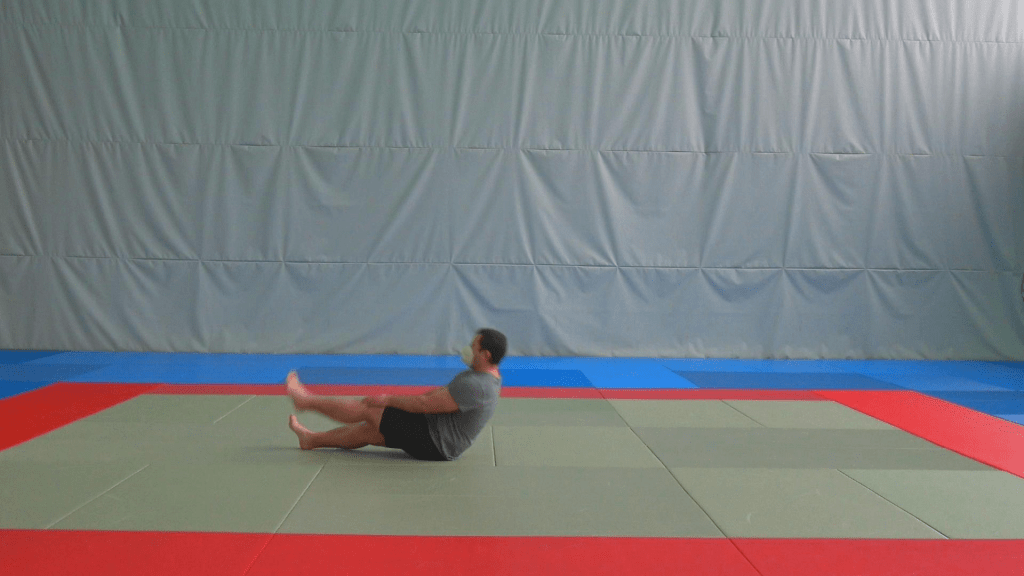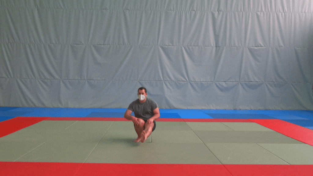 - Execution: We crouch down into a squatting position and roll backwards and to the left with our chin touching the ground. To do this, we keep our left leg extended as we descend and move it towards our right foot so that we can direct our body in that direction. Our hands are in contact with our thighs and remain in contact with them throughout the movement.