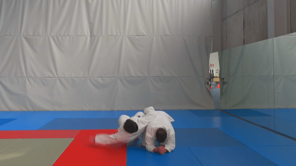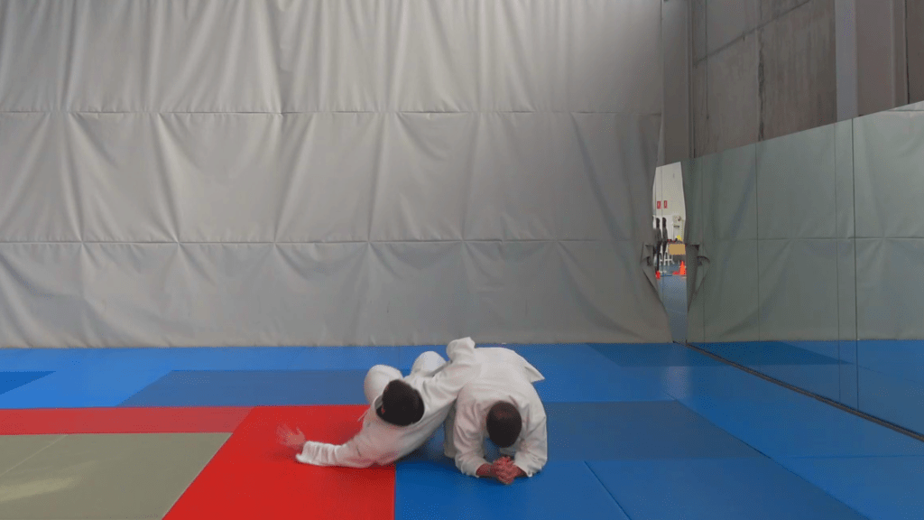 - Execution: We release our right hand from the belt and let ourselves fall to the right side, preparing ourselves with our right arm from the left shoulder to hit the ground at an angle of 35 degrees with respect to the torso. The fall must be from the upper body and not from the lower body, first contacting the upper back of the right half of the body.