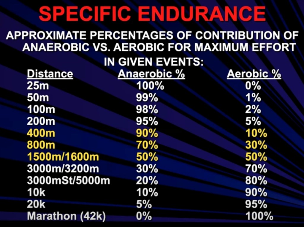 Justificación de la velocidad: La velocidad crea resistencia. La resistencia no crea velocidad. Por ejemplo, si tu mejor tiempo en los 100 m es de 15 segundos, seguramente no podrás mantener ese ritmo para los 800 m en 2:00. Pero si puedes correr los 100 m en 12 segundos, con un entrenamiento de resistencia específico adecuado, podrás mantener un ritmo de 15 segundos durante toda la carrera para lograr un tiempo de 2:00.