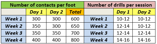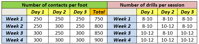 Regarding training density, that is, the number of sessions per week, I completely agree with Anselmi, and it’s the same advice other coaches give. For low-intensity drills, you could do a maximum of three sessions per week on alternate days, and for high-intensity drills, a maximum of two sessions. With the so-called level 0, you can do it absolutely every day if the focus is on strengthening your feet and joints; but if you focus on power, you could do it every day or almost every day, since the volume is low and pogo jumps are the most basic plyometric drill there is.