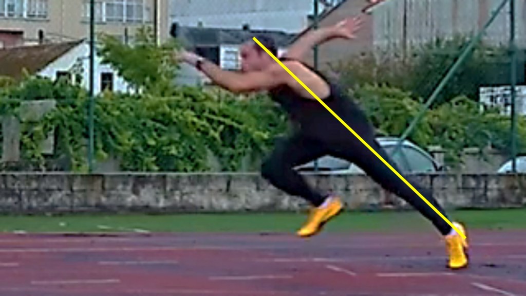 We´re going to start with addressing posture. We talked about posture, mechanics and rhythm. The posture that we´re going to preach in sprinting, we´re going to call it the hard post. Out of the blocks, we´re going to post up to assemble the hard post. And we hold that hard post as it ascends gradually till it becomes perpendicular with the ground, forming a 90º angle with the ground once that athlete becomes upright, and we´re going to push through it all the way to the finish line.